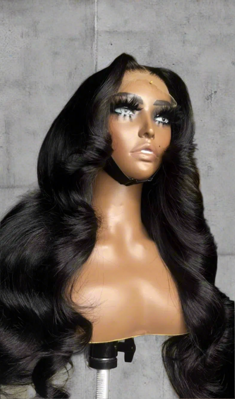 Body Black 3(20”) Raw Bundles. This wig comes pre-plucked & bleached with layers. Adjustable band and comb attached.